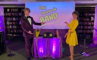 „Eine Reise in die Vergangenheit – Der Showmaster Rudi Carrell, imitiert von Entertainer Björn Tegeler, hat den Eingangsbereich der Pflegeeinrichtung in ein TV-Studio verwandelt und die berühmte Show „Am laufenden Band” aus den 1970er Jahren wieder zum Leben erweckt. Im Publikum: Rund 90 Gäste, darunter unsere Bewohnerinnen und Bewohner, ihre Angehörigen und viele unserer Mitarbeitenden und Ehrenamtlichen. Sie alle haben den Abend voller Unterhaltung, Glitzer und bunter Farben sehr genossen.“